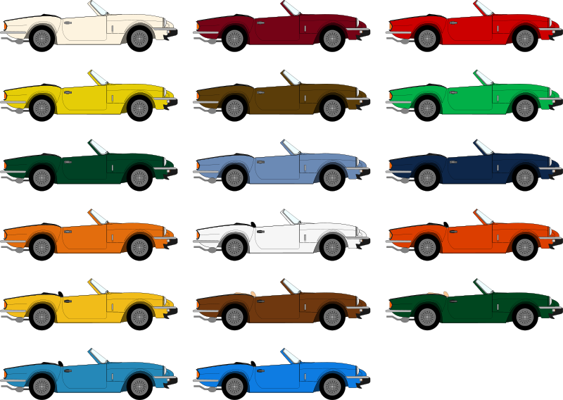 Hieronder vind u de kleurcodes waarin de Triumph Spitfire’s geproduceerd zijn in de periode van oktober 1962 tot augustus 1980: